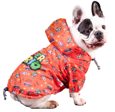 Piloto sublimado forro interno en capucha pecho y espalda, mangas con terminación de elástico, espalda estampada MARIO. Cordón regulable en cintura y capucha con terminales. Ojal para el pasado de correa en la espalda. Bolsita con cordón y terminal para transportar el piloto en todo momento.